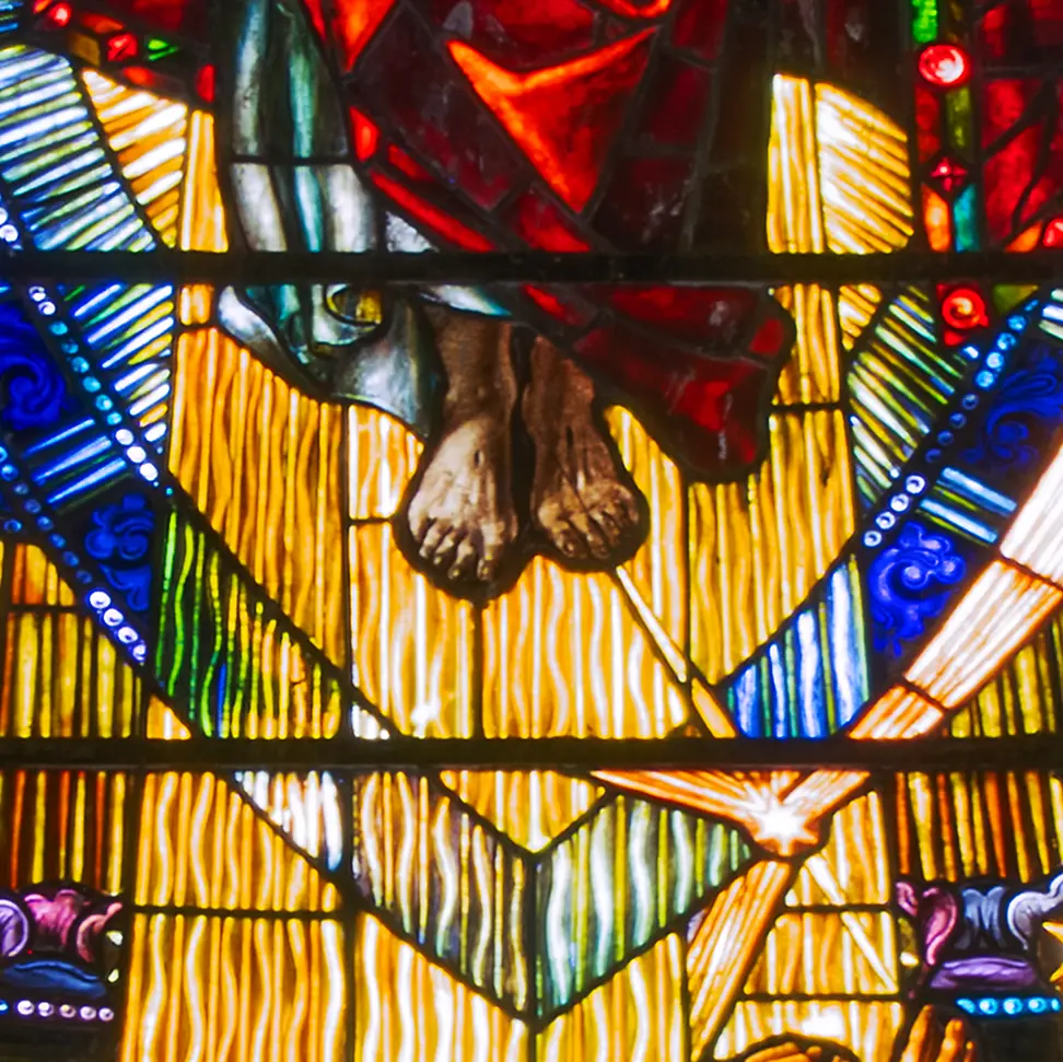 This large-format photograph captures the moment sunlight explodes through Medak cathedral's stained glass, igniting the vast canvas in a breathtaking tapestry of devotion. The goal was to translate this ephemeral experience into a tangible image with unparalleled detail and scale, immersing the viewer in the scene's jewel tones and sacred light.