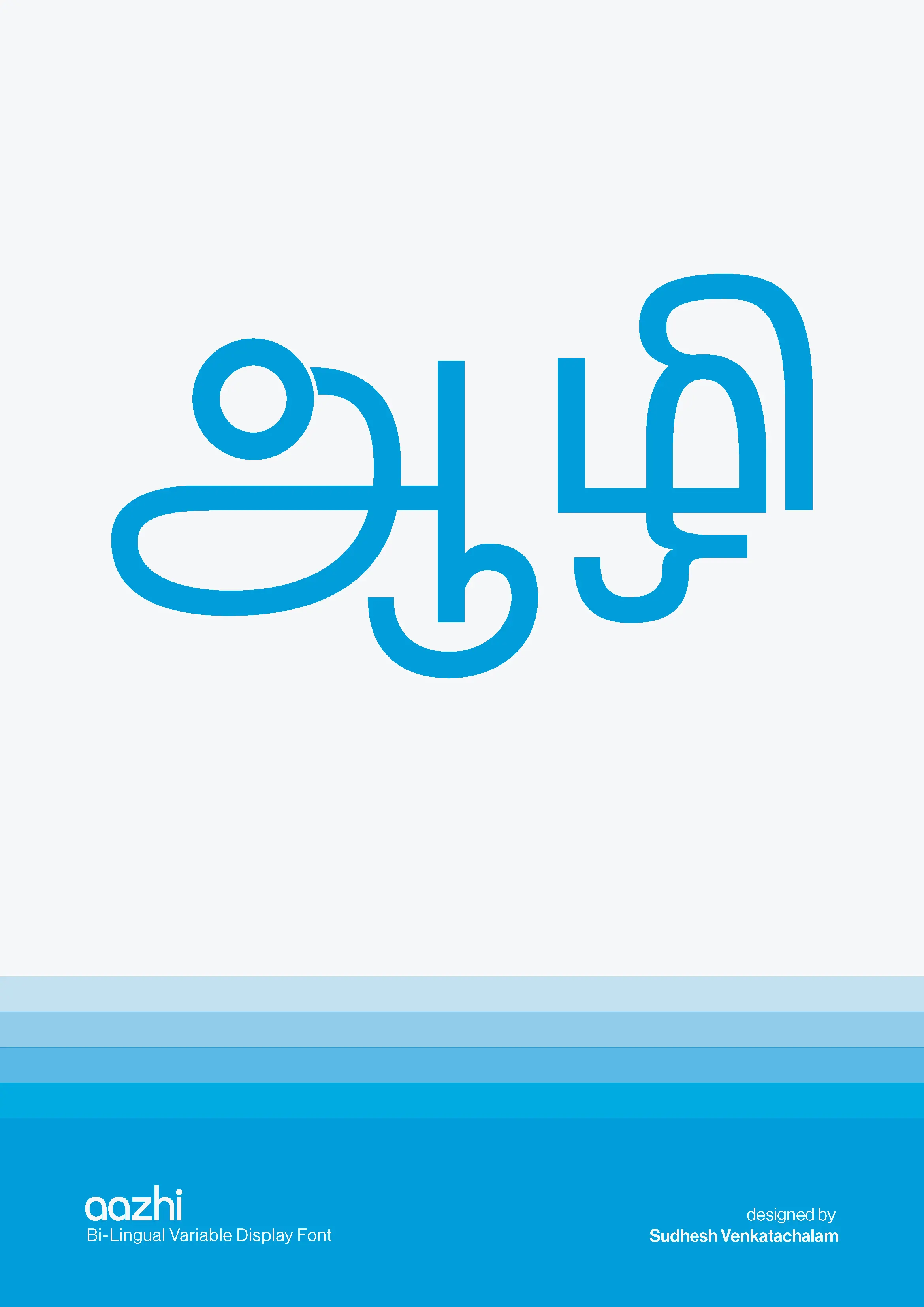 aazhi is a modern tamil font, encapuslating the lastest font technology and the mesmersising curves of the tamil script.